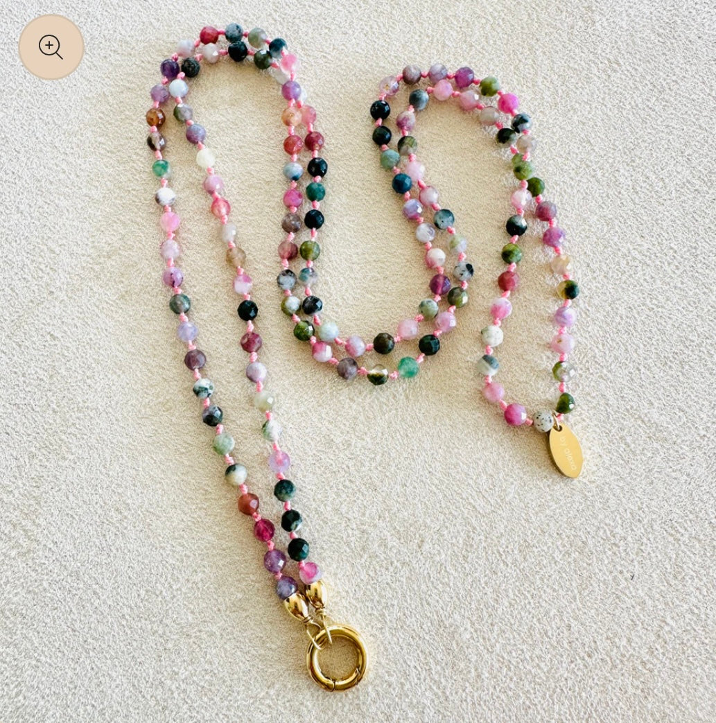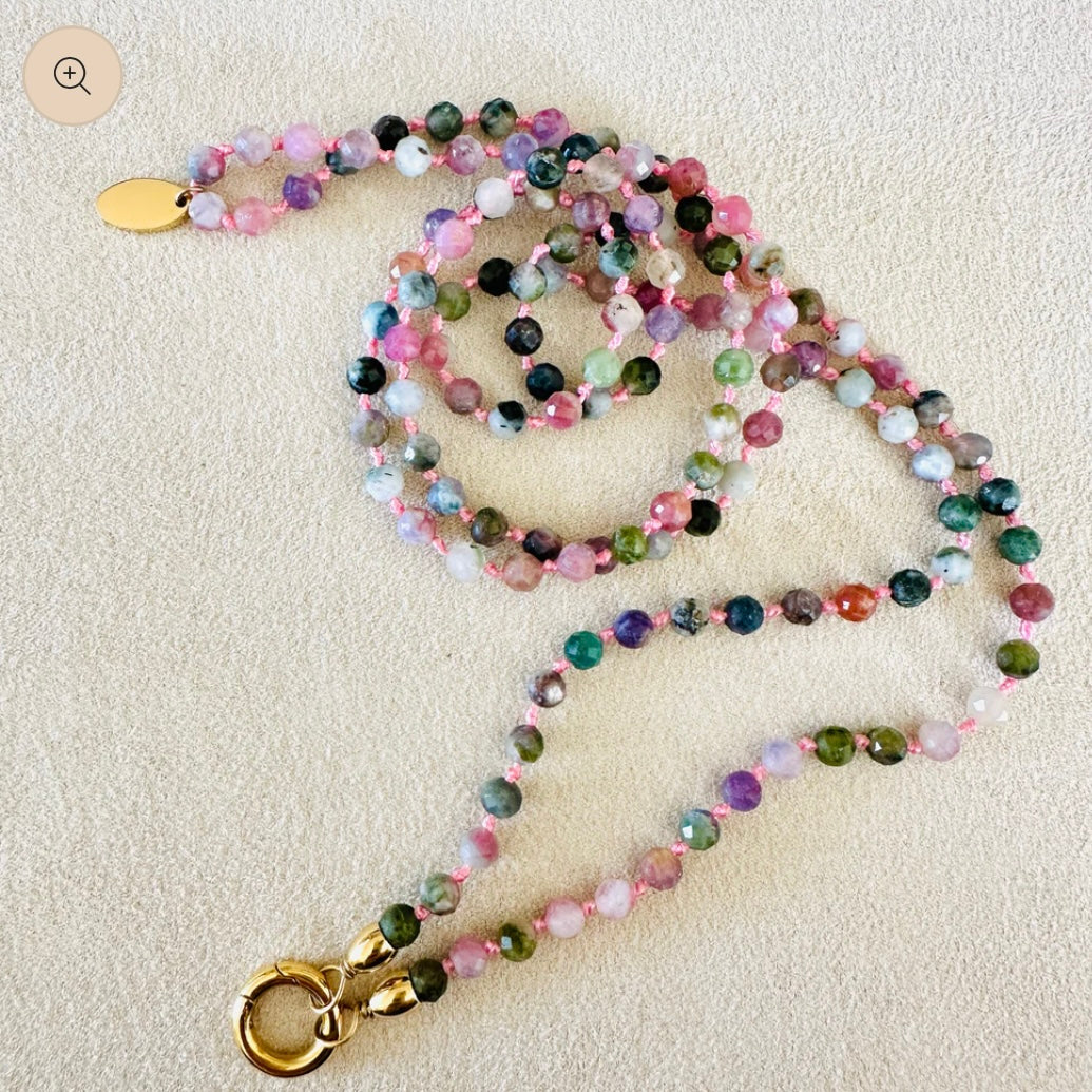 - Der bunte Turmalin ist ein natürlicher Edelstein, deshalb können Farbabweichungen von Kette zu Kette sein.